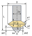 | Back Boring Bar: OverallLength (L) CuttingDiameter (D) WorkingLength (WL) Height1 (h1) Height2 (h2) Angle1 (a1) Angle2 (a2) StemDiameter (Ds) StemAngle (Sa) StemHeight1 (sh1) StemHeight2 (sh2) |
