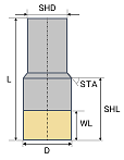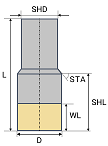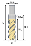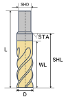 | Cylindrical Mill: OverallLength (L) CuttingDiameter (D) WorkingLength (WL) ShankDiameter (SHD) ShoulderLength (SHL) ShankTaperAngle (STA) |