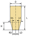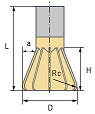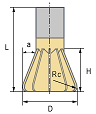 | Undercut Dove Mill: OverallLength (L) Diameter (D) WorkingLength (WL) Angle (a) CornerRadius (Rc) ShapeLength (H) |