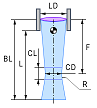 | Laser Beam Cutter: OverallLength (L) WorkingLength (WL) LensDiameter (LD) FocalDistance (F) CylinderZoneDiameter (CD) CylinderZoneLength (CL) CurvatureRadius (R) LaserBeamLength (BL) |
