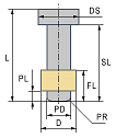 | Pilot Counterbore: OverallLength (L) Diameter (D) WorkingLength (WL) ShaftDiameter (DS) PilotDiameter (PD) ShoulderLength (SL) FluteLength (FL) PilotLength (PL) PilotRadius (PR) |