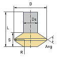 | Undercut Rounded Chamfer Mill: OverallLength (L) Diameter (D) WorkingLength (WL) Height (S) Angle (Ang) Radius (R) StemDiameter (Ds) |