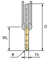 | Saw Blade: WorkingLength (WL) Diameter (D) Thickness (Th) RoundingRadius (R) |