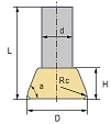 | Limited Conical Mill: OverallLength (L) CuttingDiameter (D) WorkingLength (WL) ShankDiameter (SHD) ShoulderLength (SHL) ShankTaperAngle (STA) Radius (Rc) TipRadius (R) Angle (A) ShapeLength (H) |