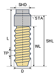 | Tap: OverallLength (L) CuttingDiameter (D) WorkingLength (WL) ShankDiameter (SHD) ShoulderLength (SHL) ShankTaperAngle (STA) Angle (A) ThreadPitch (TP) |
