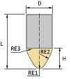 | Undercut Taper Barrel Mill: OverallLength (L) Diameter (D) WorkingLength (WL) Height (H) EdgeR1 (RE1) EdgeR2 (RE2) EdgeR3 (RE3) |