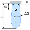 | Taper Jet Cutter: OverallLength (L) Diameter (D) WorkingLength (WL) JetLength (JL) NozzleDistance (ND) TaperAngle (Ang) |