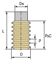 | Thread Mill: OverallLength (L) CuttingDiameter (D) WorkingLength (WL) StemDiameter (Ds) Pitch (P) PitchCount (c) OD_ID (OD/ID) |